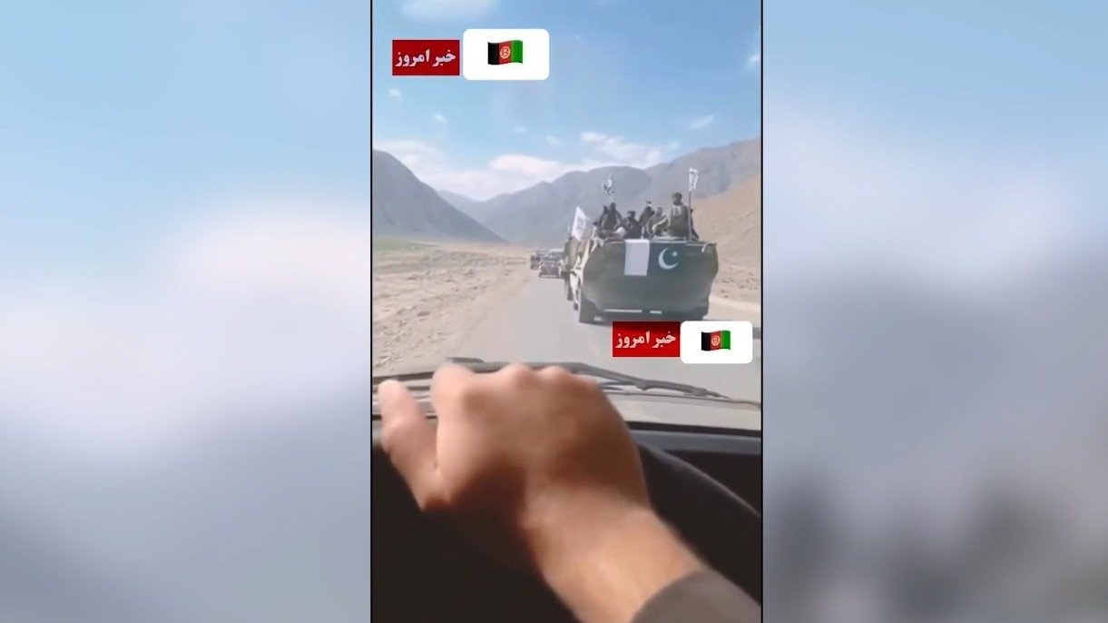 The footage showed the individual filming Pakistani-flagged tanks passing by, with armed individuals, presumably Taliban fighters, stationed on the tanks holding Taliban flags.